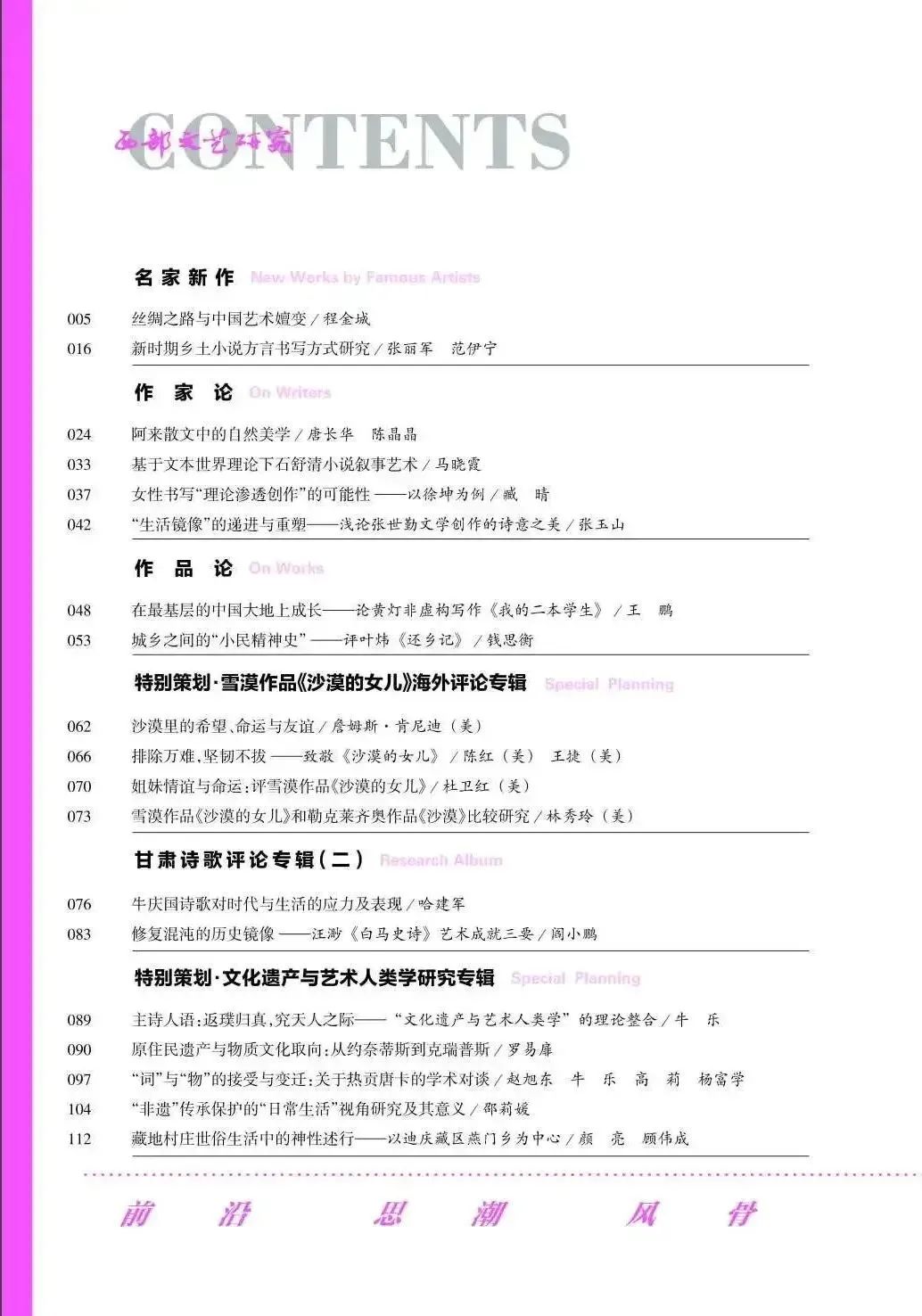 《西部文艺研究》2022年第3期目录