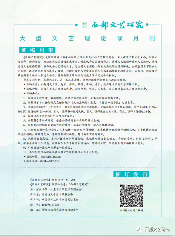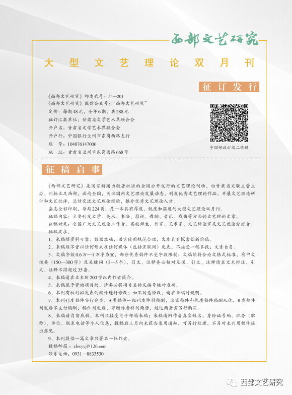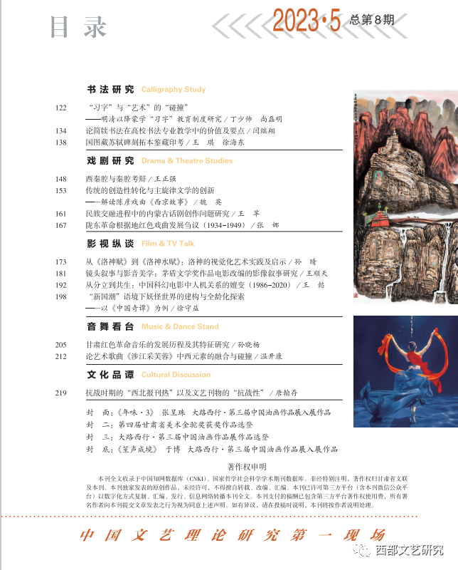【西部文艺研究前沿/主持人:李震】Research Frontier of Literature and Art in Western China