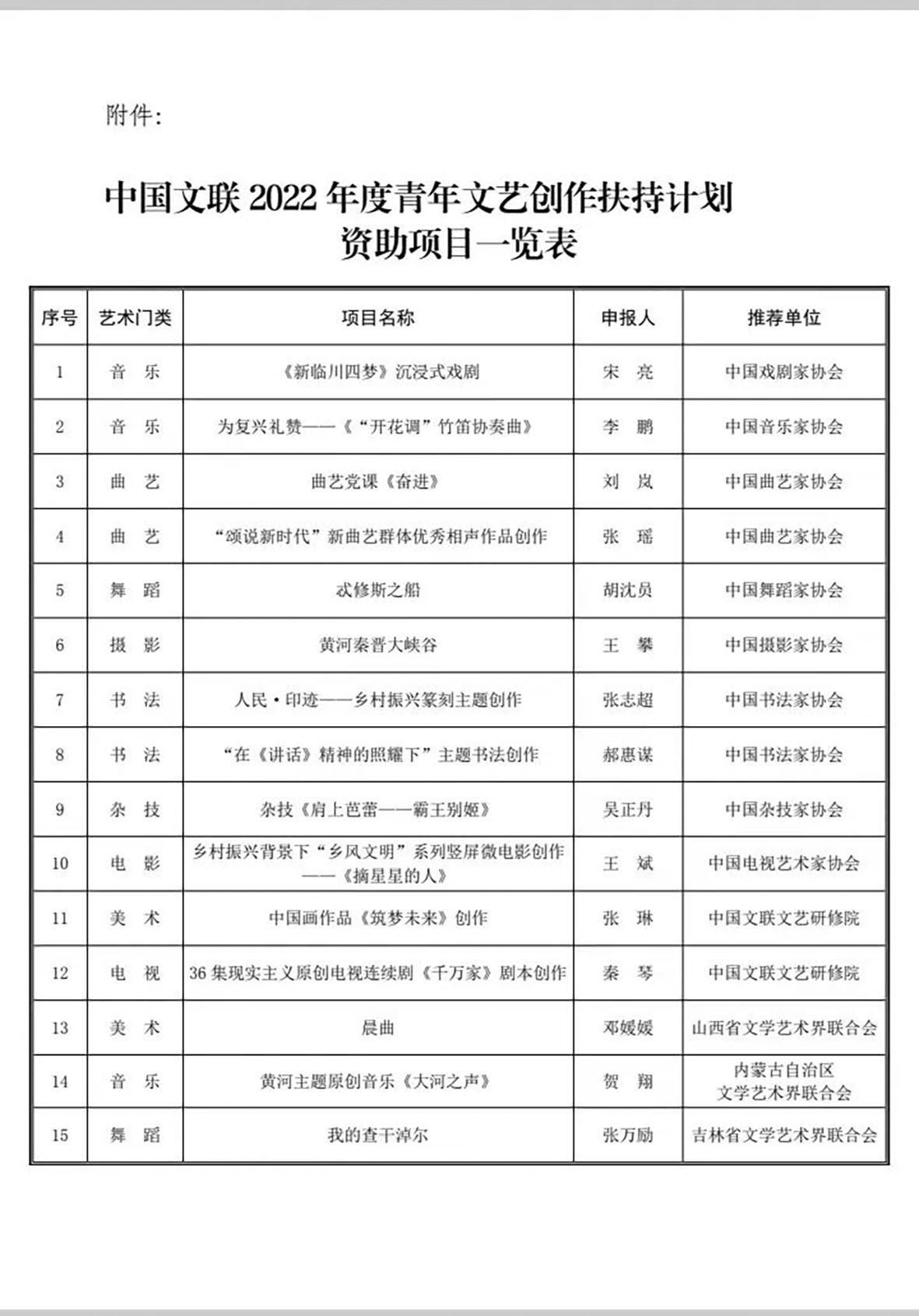 附件:中国文联2022年度青年文艺创作扶持计划资助项目一览表
