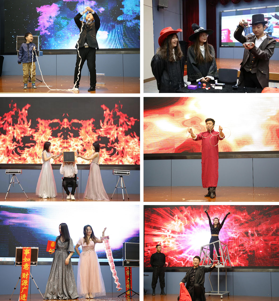 本次魔术大赛、展演风格多种多样,形式丰富多彩。舞台魔术、互动魔术、近景魔术、古彩戏法……让观众们纷纷沉浸于奇妙的魔幻世界之中。华丽的舞台、形象的道具、引人入胜的情节,深深地吸引了观众的眼球。魔术师给大家带来了精彩的魔术表演,为大家带去了无限欢乐。一个个神秘的魔术,让观众随着魔术师幽默的语言和精湛的演技,时而紧张、时而兴奋、时而欢呼。精彩的扑克牌魔法表演把活动推向高潮,台下观众掌声不断。