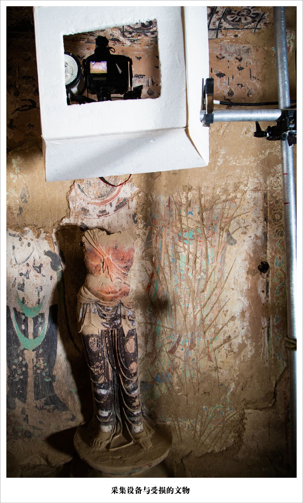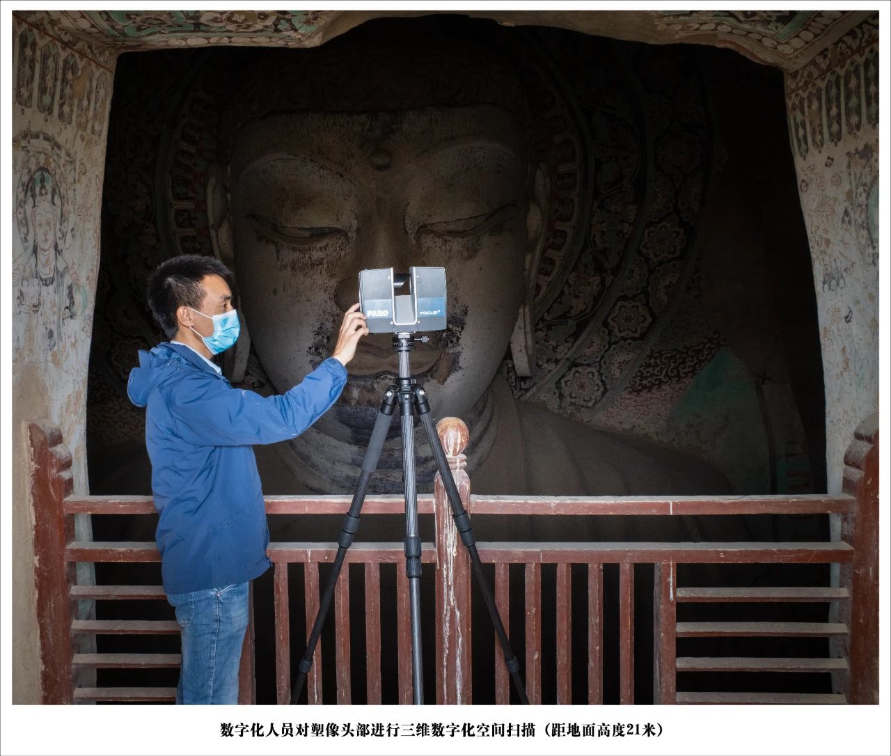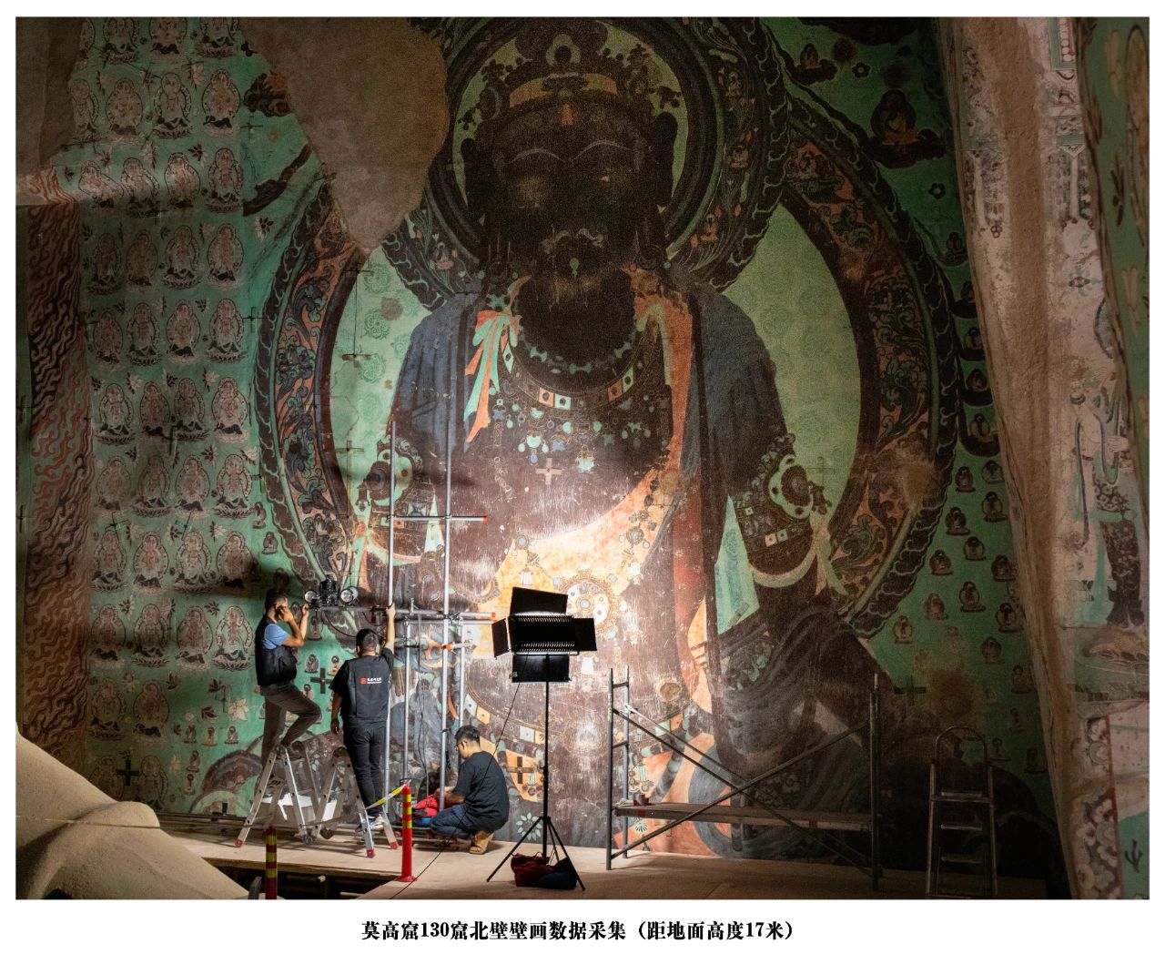 莫高窟第130窟开凿于盛唐开元、天宝年间,前后费时约二、三十年。窟内塑像高26米,是目前国内保护最好,同时也是莫高窟第二大的唐代造像。由于不可控的客观环境影响,莫高窟的壁画正在以一种不可逆转的方式衰退,对洞窟珍贵的壁画与塑像进行数字化保护刻不容缓。